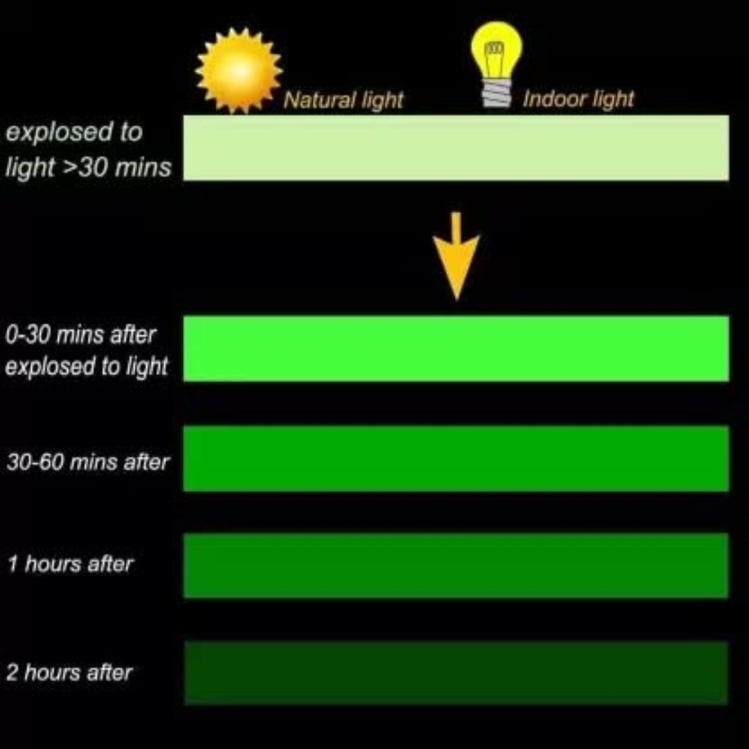 Photoluminescent strip glows brightly in low-light or dark environments – no power needed!